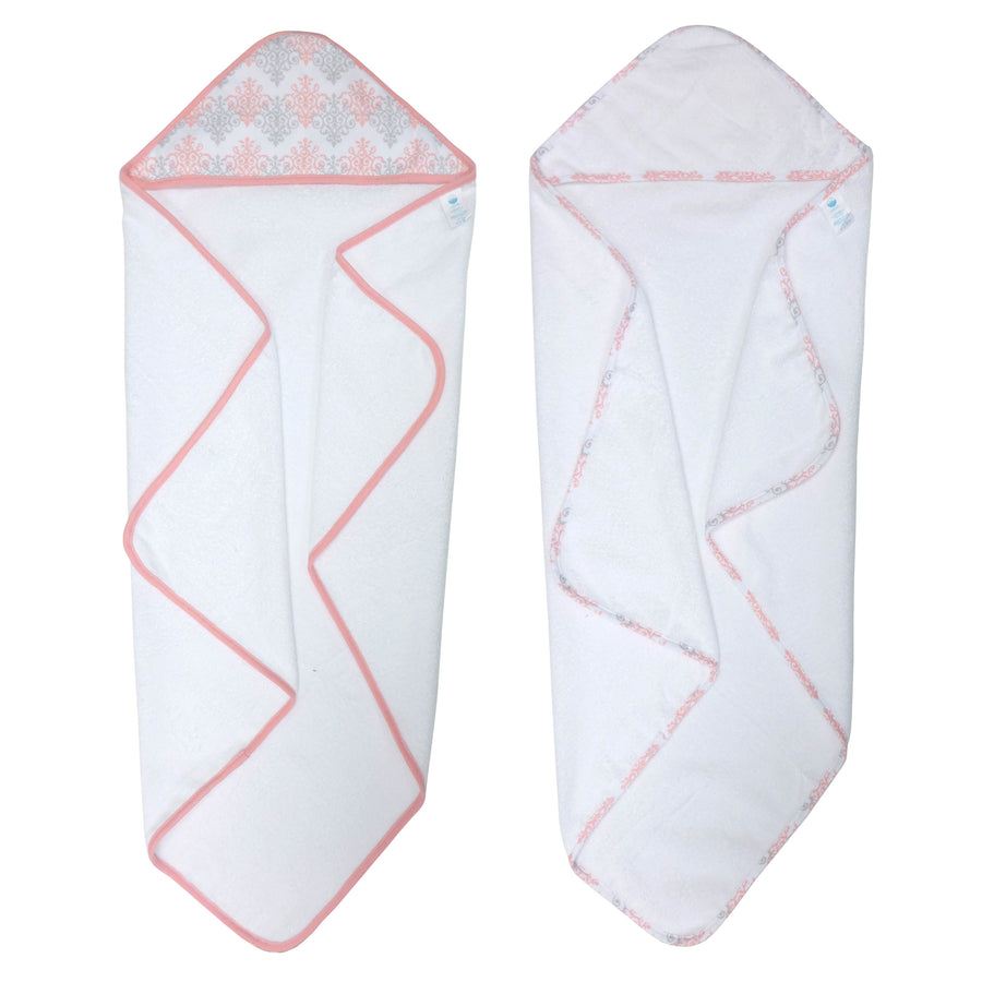 Baby Treasures® Baby Hooded Towel Set - Pink Trim 2 pack