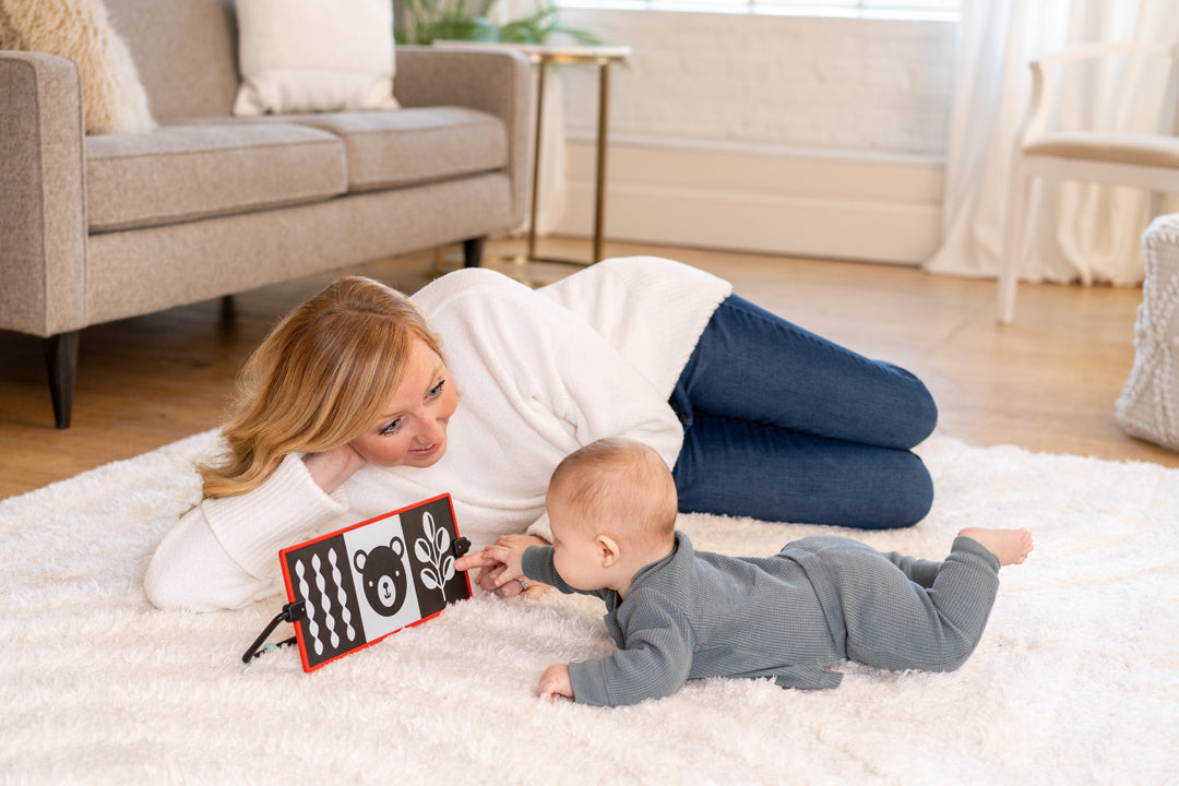 full-body view gives baby a whole new perspective and encourages self-awareness. - Capture your and baby’s reflections during tummy or seated play time to encourage recognition and depth perception. Smile and make silly faces, encouraging baby to mimic. Every baby starts smiling at a different time—that's okay!