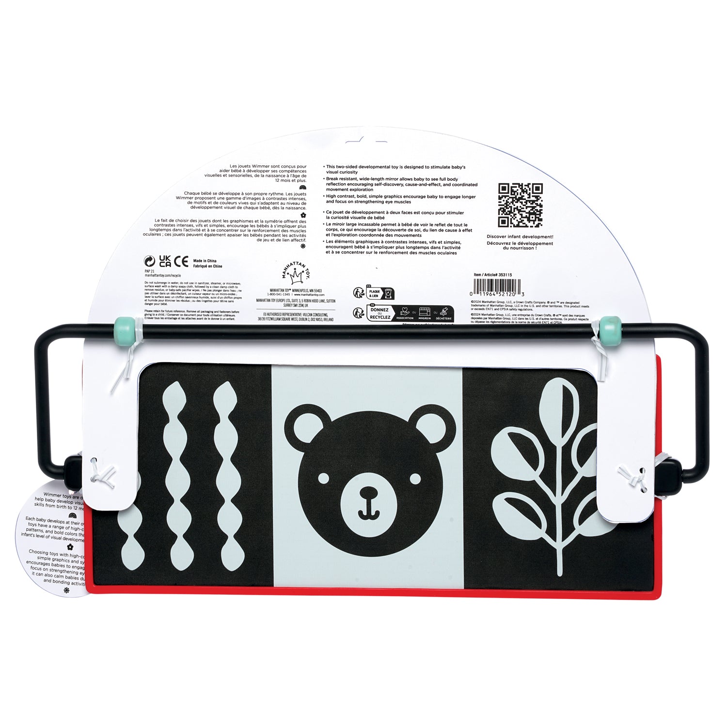 - Horizontal baby-safe mirror encouraging self-discovery and depth perception